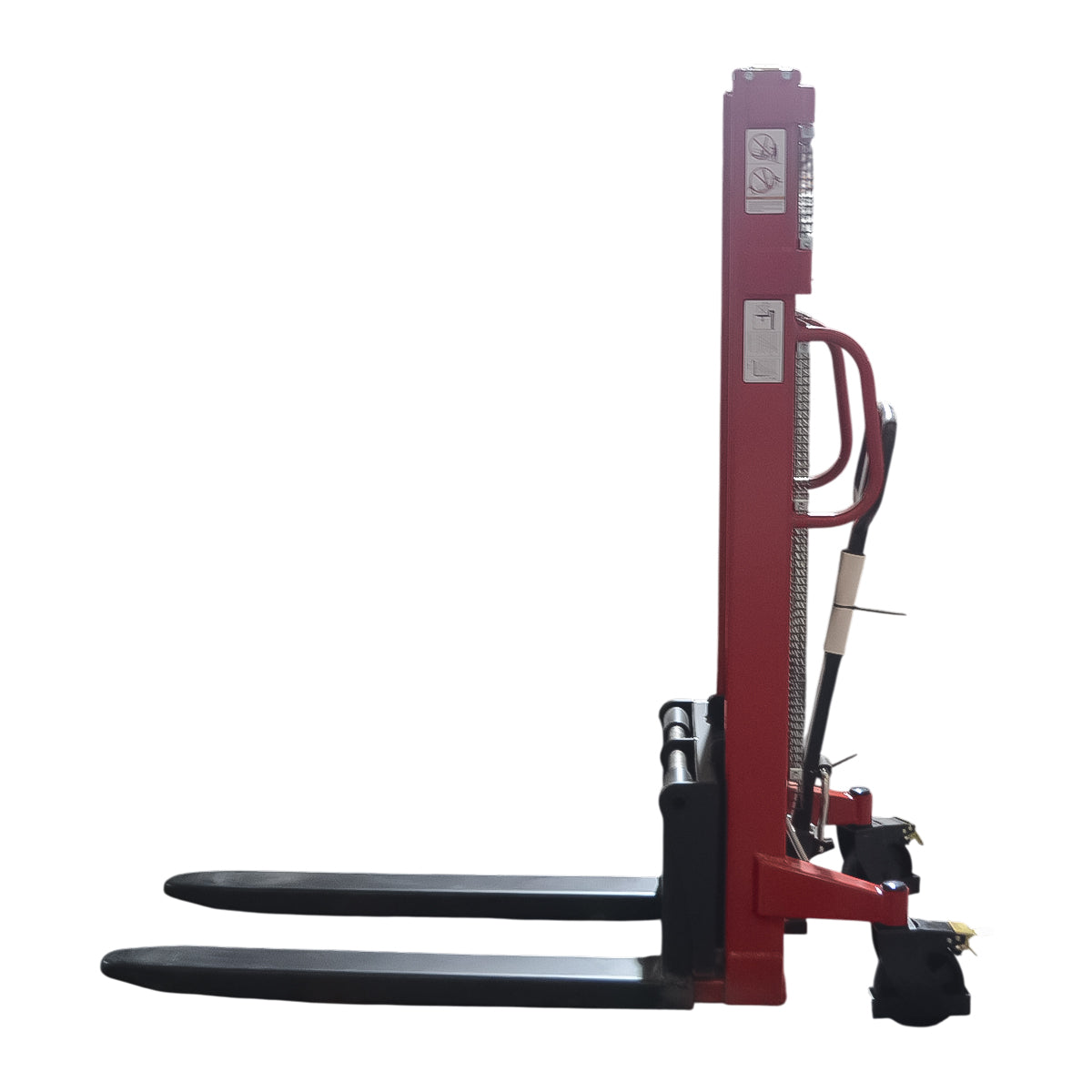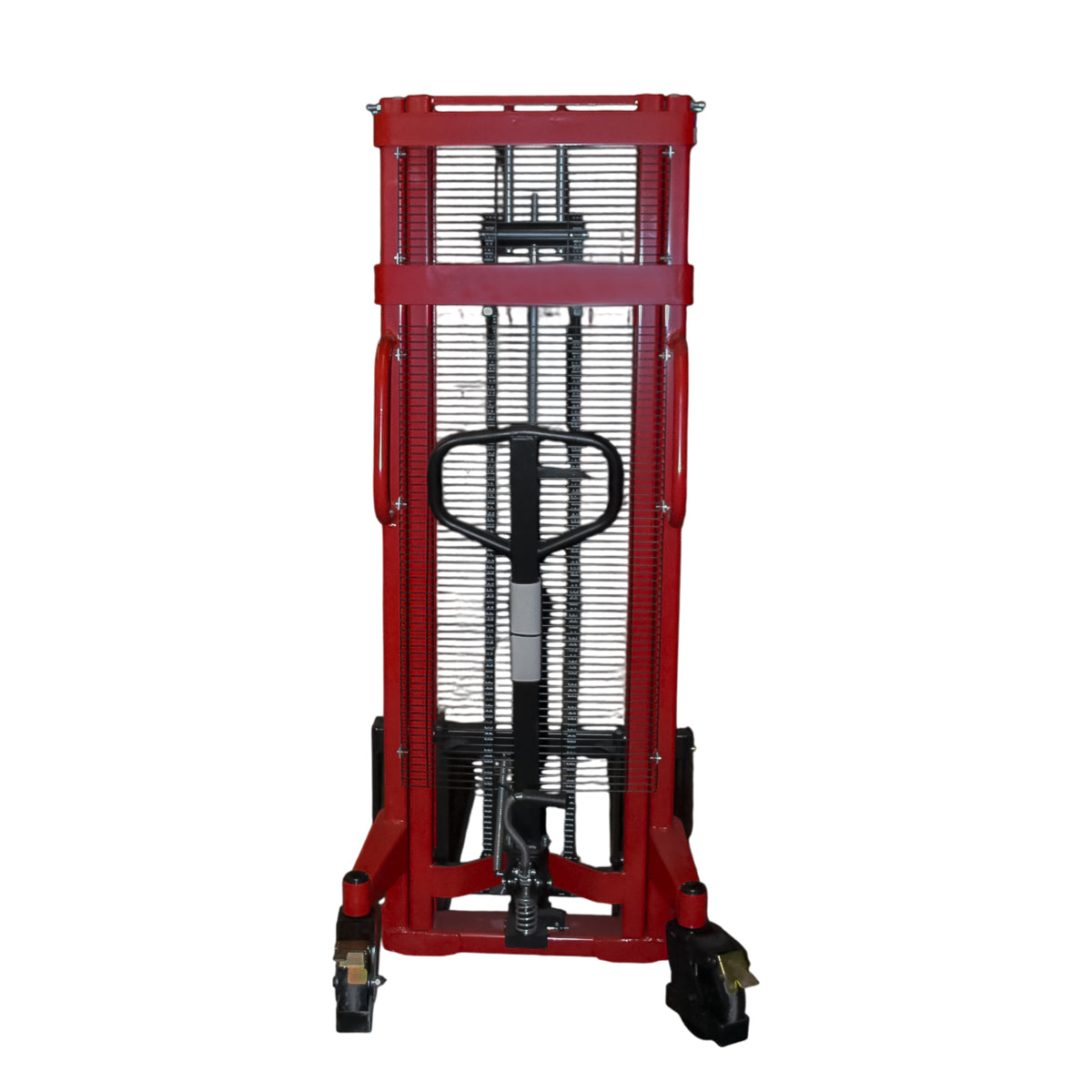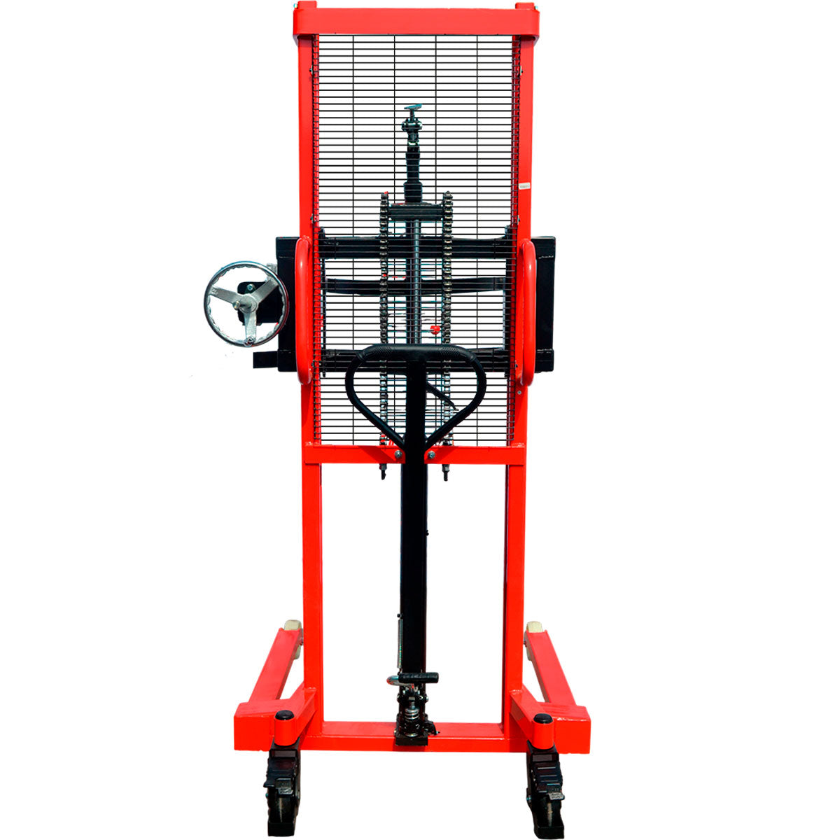 Impulsado por una batería de 24 V, el apilador proporciona una velocidad de elevación aproximada de 70 mm/s, logrando una operación fluida, silenciosa y con menor consumo energético. Su freno electromagnético garantiza un control inmediato del movimiento, incrementando la seguridad del operador en cada maniobra.
