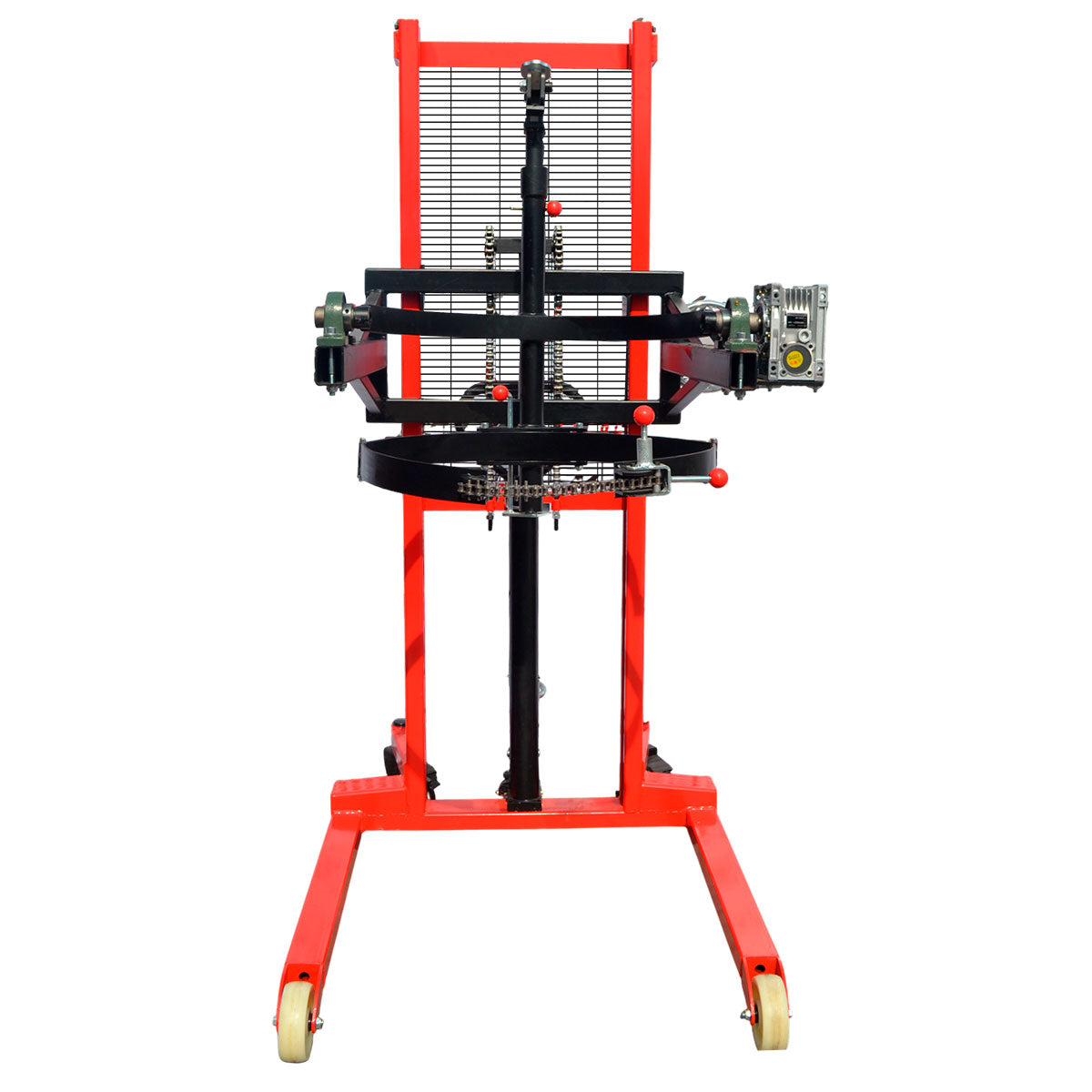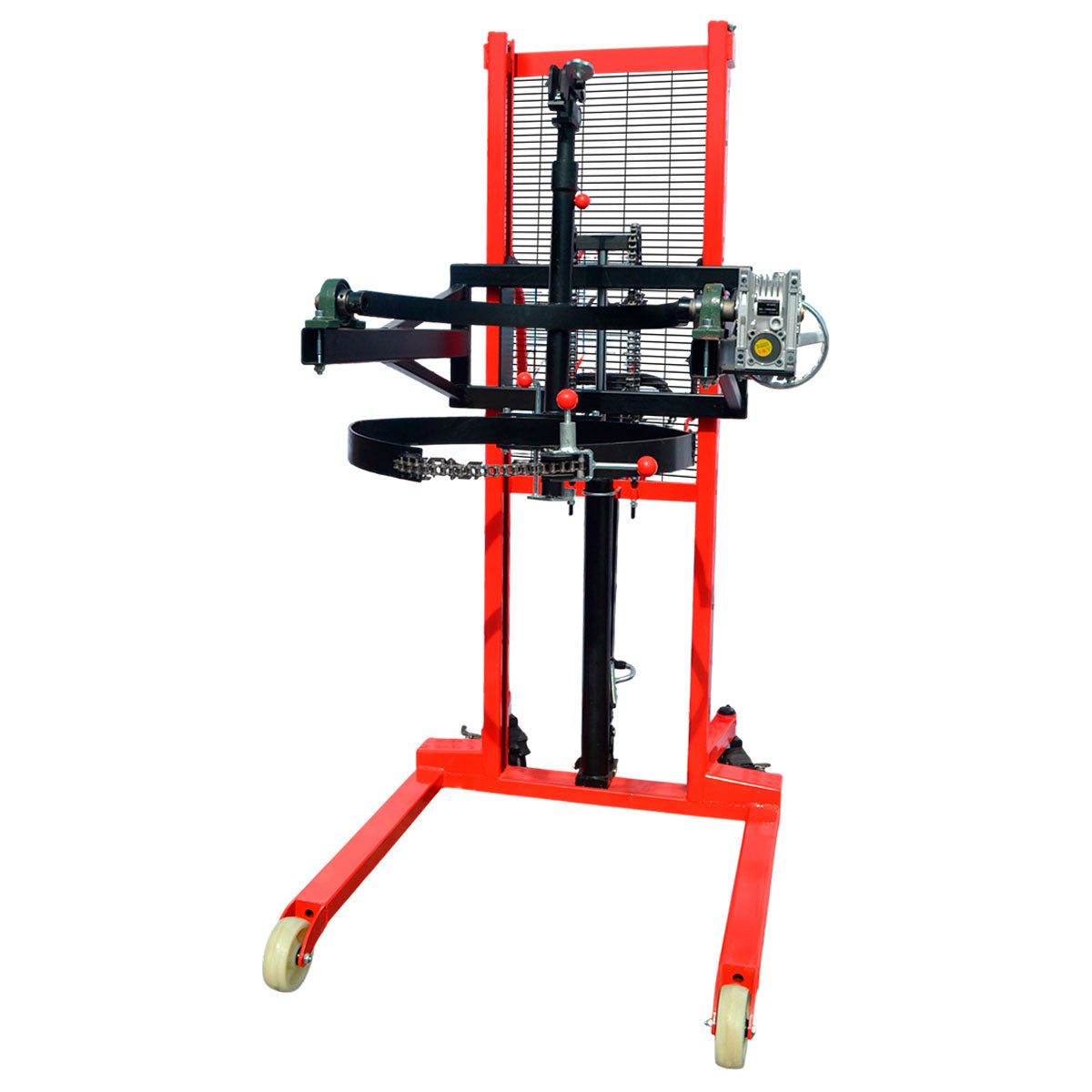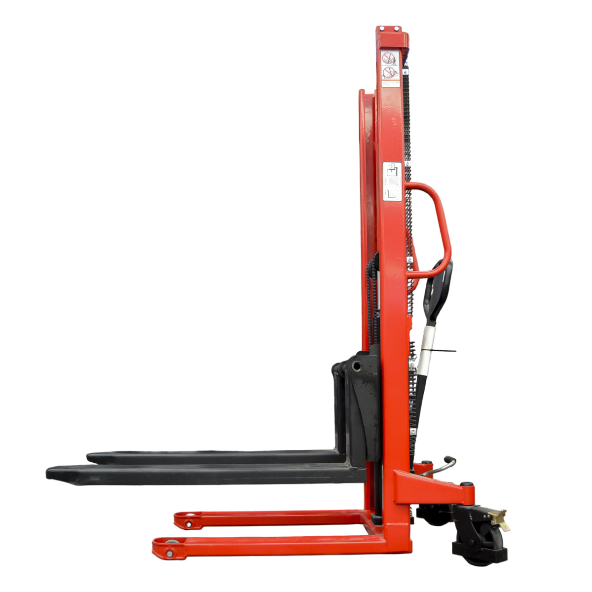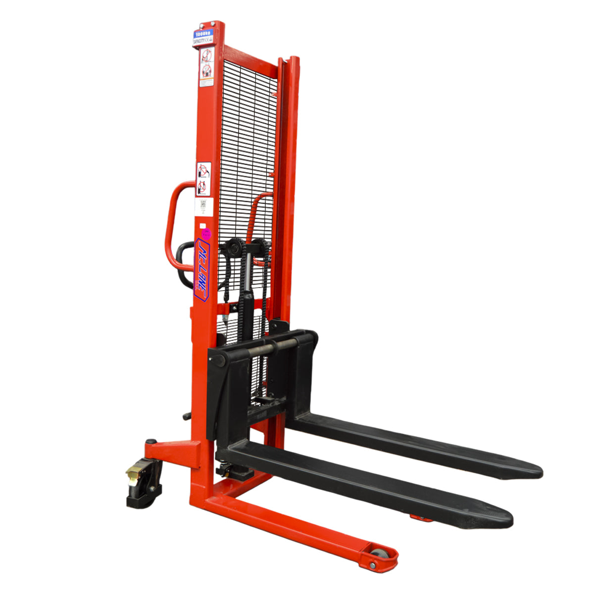 Impulsado por una batería de 24 V, el apilador proporciona una velocidad de elevación aproximada de 70 mm/s, logrando una operación fluida, silenciosa y con menor consumo energético. Su freno electromagnético garantiza un control inmediato del movimiento, incrementando la seguridad del operador en cada maniobra.