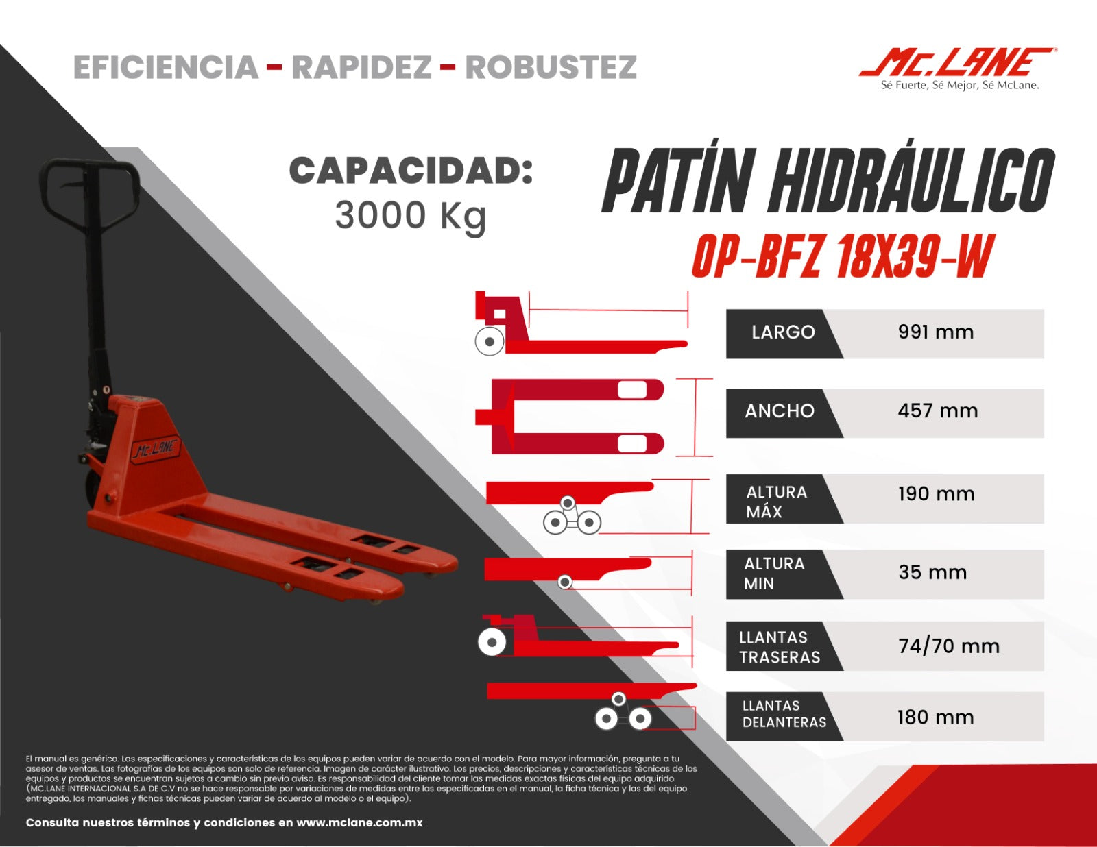 Patines hidráulicos para uso industrial y comercial, diseñados para soportar carga pesada con máxima eficiencia y durabilidad.